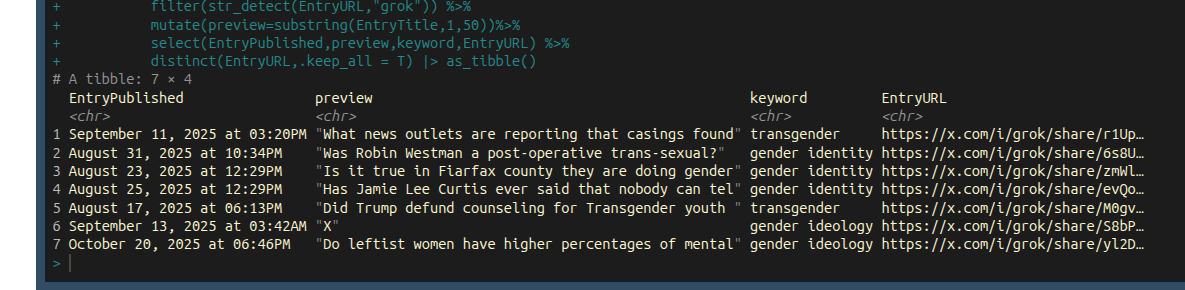 Although I had set out to track the news in it’s more traditional sense, and the evolving linguistic drift myself and other researchers had been noticing, what I also found was a snapshot of how social media and the app-driven information economy impact what is served as news. In many cases, the URL served reveals information about the source. For Substack articles, the IDs of specific users are often visible, including hashes that validate them as being generated to send to a specific person, like a gift link.